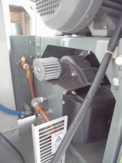 オイルフリー式スクロールコンプレッサ5.5kw=7.5馬力です。ドライヤーはありません。