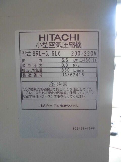 日立産機 5.5kwオイルフリースクロール 最高圧力0.3Mpa(3kg/fcm2)ドライヤー無し