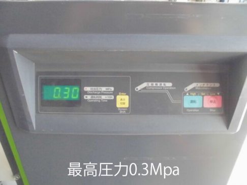 大変変わったコンプレッサです。最高圧力が0.3MPaです。むかしの3kgf/cm2です。