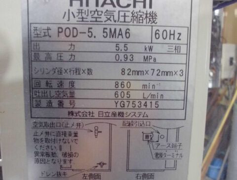 日立オイルフリーパッケージベビコン 5.5kw(7.5馬力)
