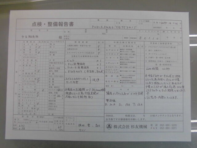 今回、簡易メンテナンス、点検、試運転を施工済みです。