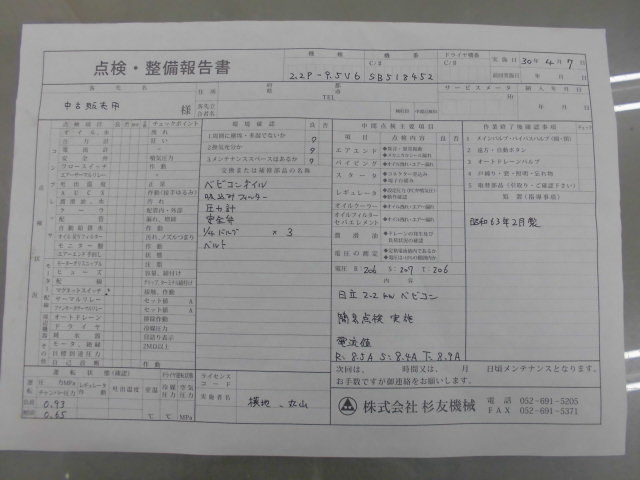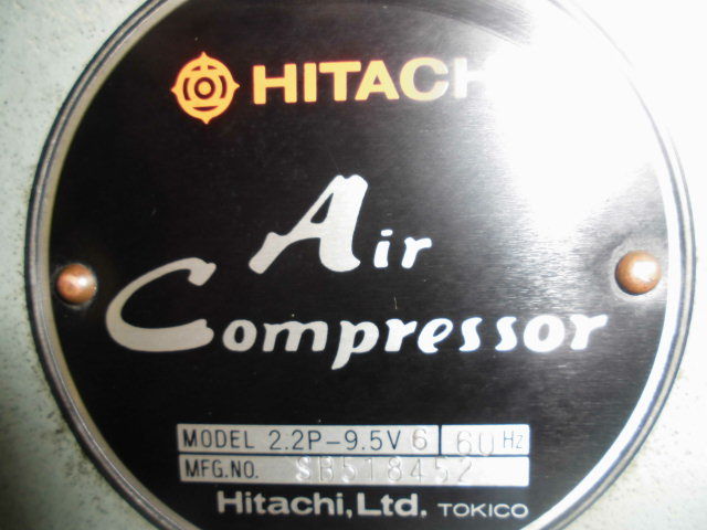日立製のオイル潤滑式のレシプロコンプレッサー2.2kw(3馬力)です。